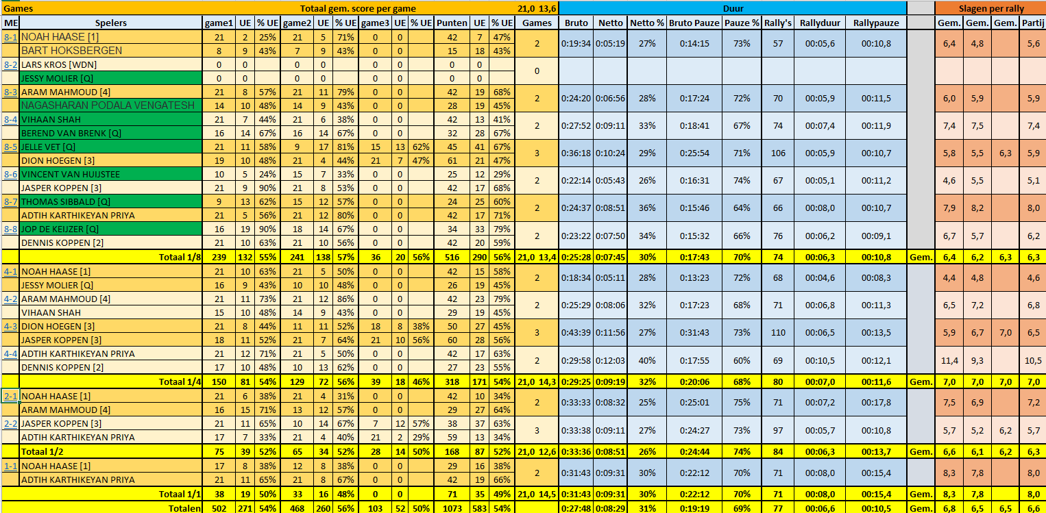 | Grootste marge | Haase - Hoksbergen (ME R16) | 21-8, 21-7 | +27 |